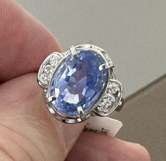 A Delightful 7.05ct Unheated Blue Sapphire Platinum & Diamond Ring