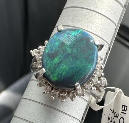 Exquisite 3.42ct Australian Black Opal & Diamond Platinum Ring