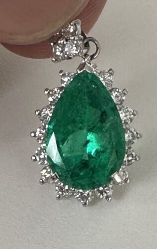 Exquisite 4.02ct Colombia Emerald & Diamond Platinum Pendant