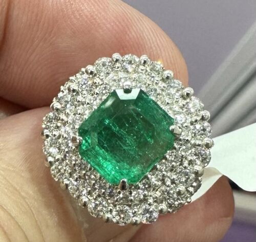 Gorgeous 3.11ct Colombia Emerald & Diamond Platinum Ring