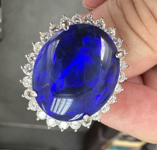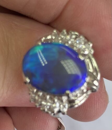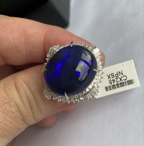 Magnificent 16.75ct Australian Black Opal & Diamond Platinum Ring