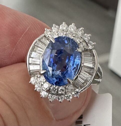 Exquisite 3.74ct Sri Lanka Blue Sapphire & Diamond Platinum Ring