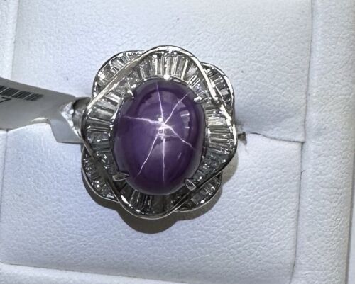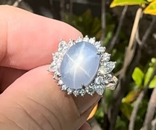 An Exquisite Sri Lanka 8.23ct Star Sapphire & Diamond Platinum Ring
