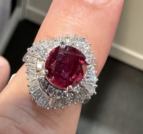 An Exquisite 2.53ct Thai Ruby & Diamond Platinum Ring GRS