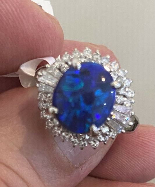 An Exquisite 2.75ct Australian Black Opal & Diamond Platinum Ring