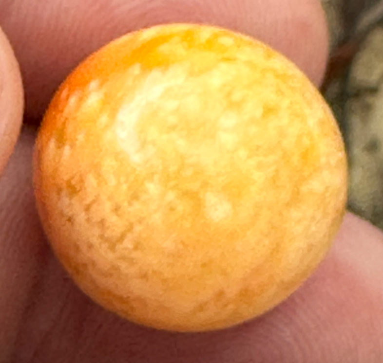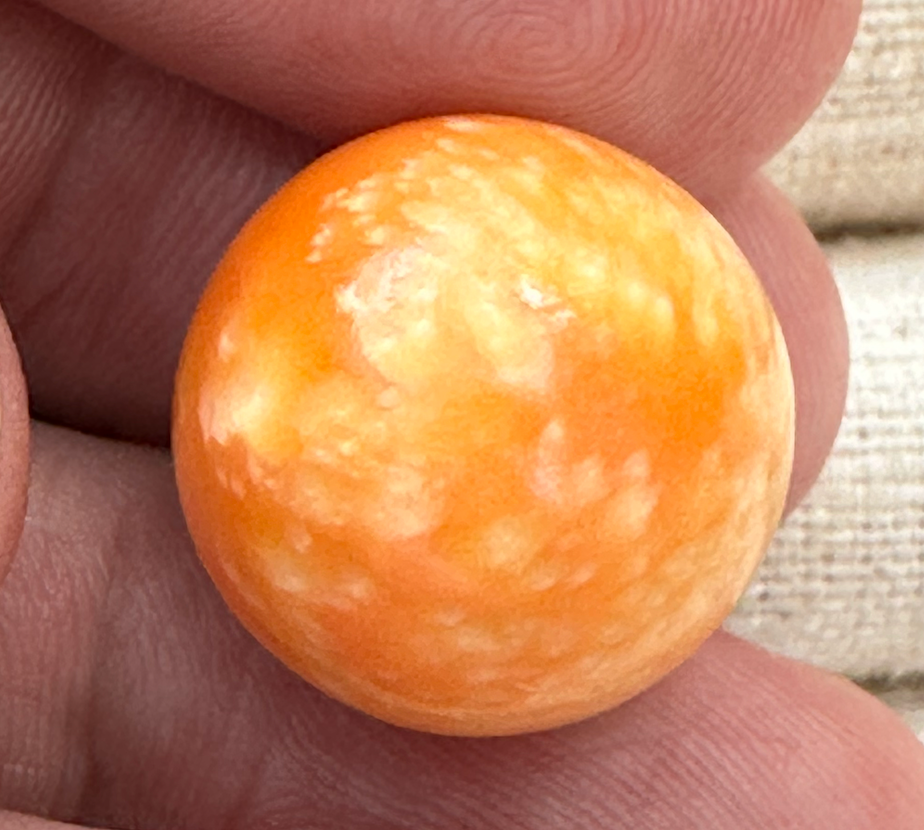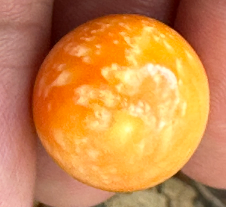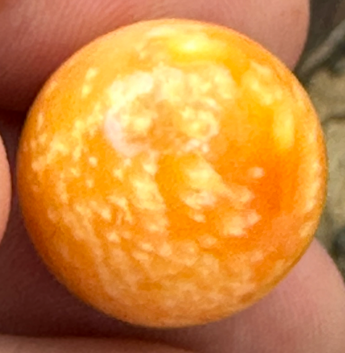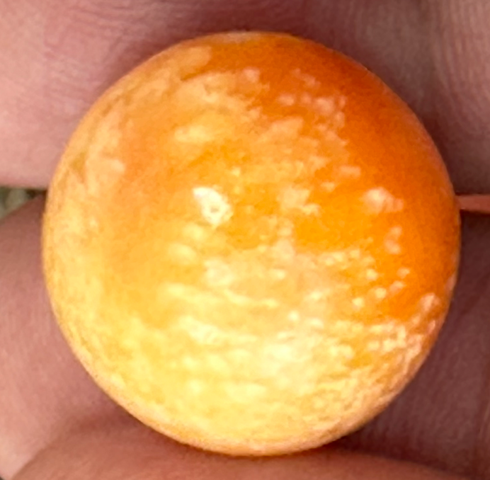 A truly Magnificent Melo Pearl weighing an extraordinary 47.95ct. The colour is a gorgeous medium to strong orange with areas of yellow-range and yellow. The Pearl is free from ugly blemishes. There is a very pretty ‘flame’ 'patch' and ‘spot’ pattern on the Pearl, absolutely gorgeous. No unseemly areas at all. Gorgeous lustre! Excellent almost round shape. The pearl has been fully certified by GIA as a natural melo pearl, no treatment. Perfect for a sensational pendant or even an extraordinary ring, this stunning pearl would grace even the most impressive of gem collections. This is an absolutely natural saltwater Pearl and is not freshwater or cultured Pearl. Absolutely rare and absolutely stunning! Simply stunning and absolutely certain to increase in value as time goes by. Shipping Fedex or Dhl