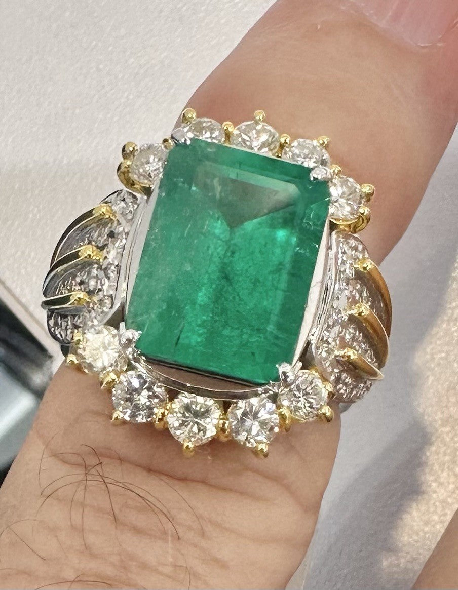 A Superb 5.30ct Colombia Emerald & Diamond Platinum Ring