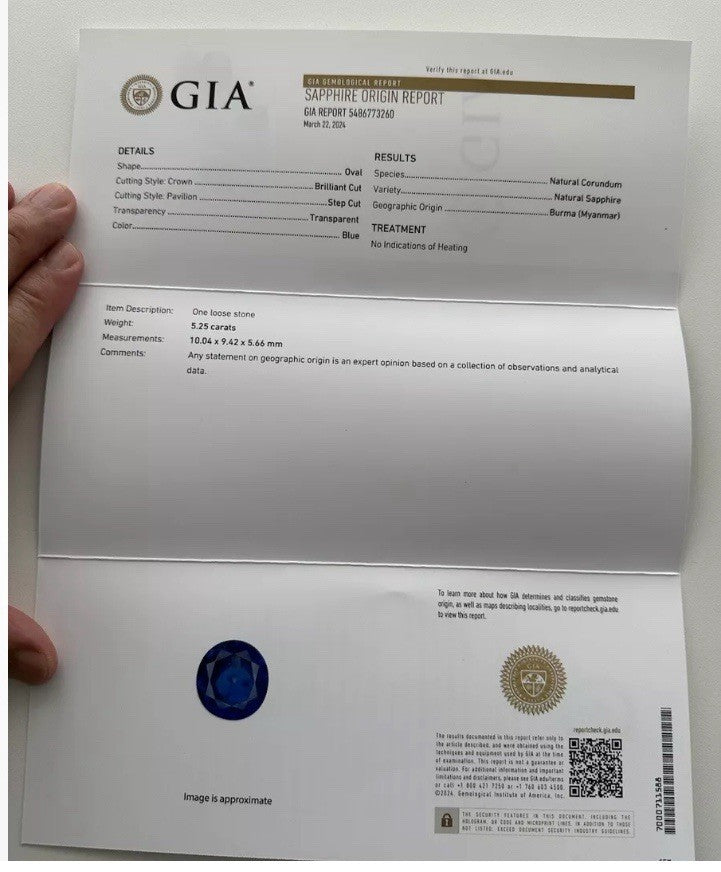 A Beautiful Unheated No Heat 5.25ct Burma Blue Sapphire Plat & Diamond Ring GIA